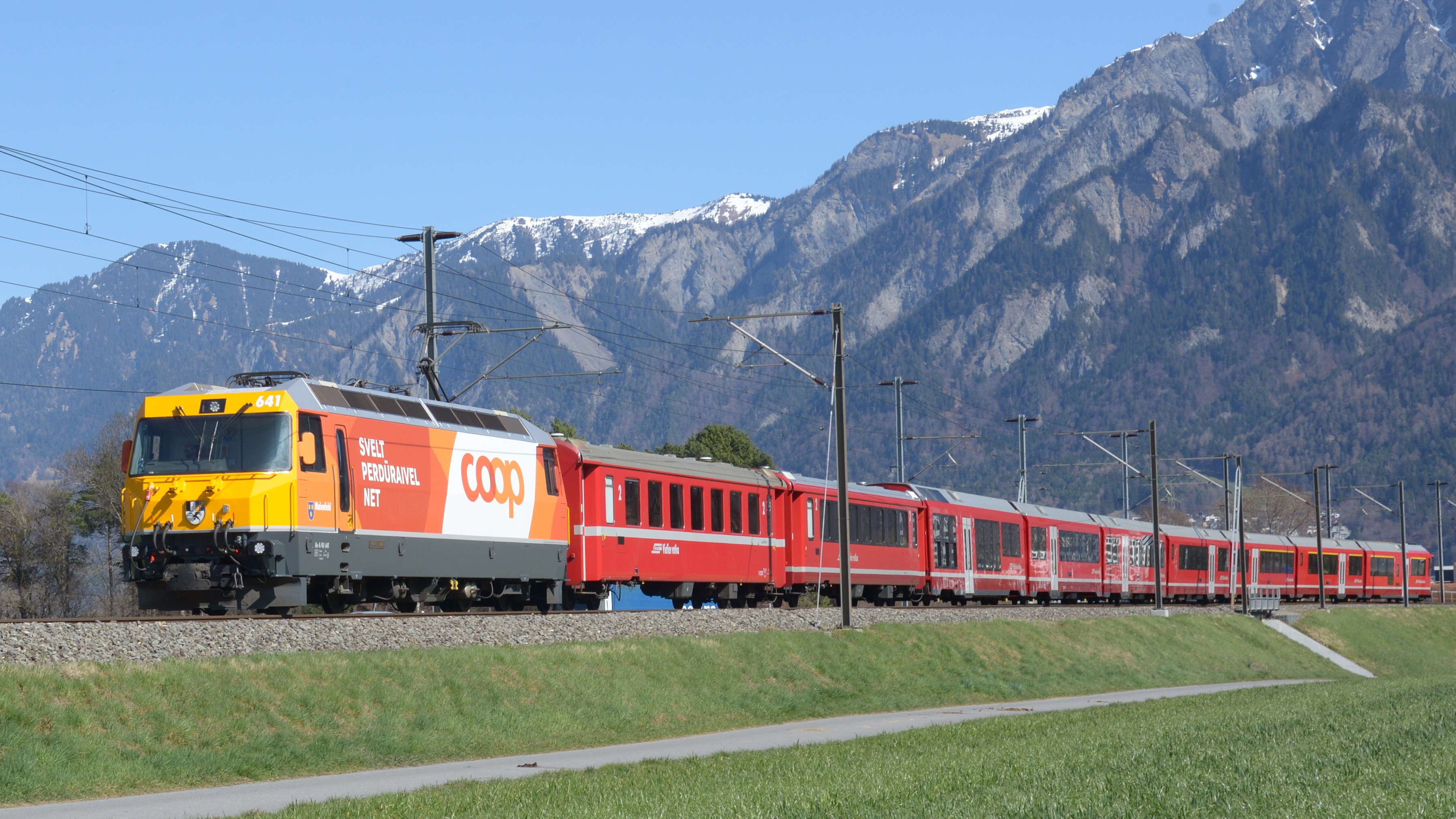 Die Ge 4/4III 641 wurde für Coop neu foliert, Chur.