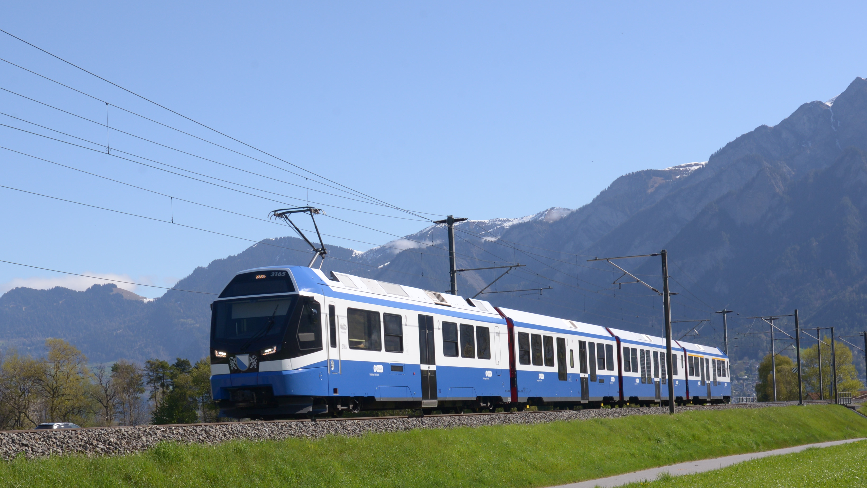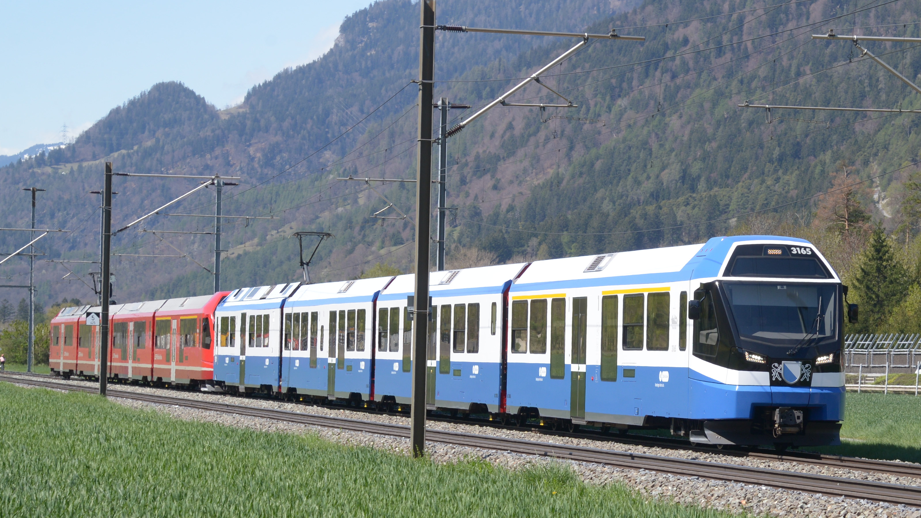 Der ABe 4/16 3165 fällt auf. Hier vor Felsberg.