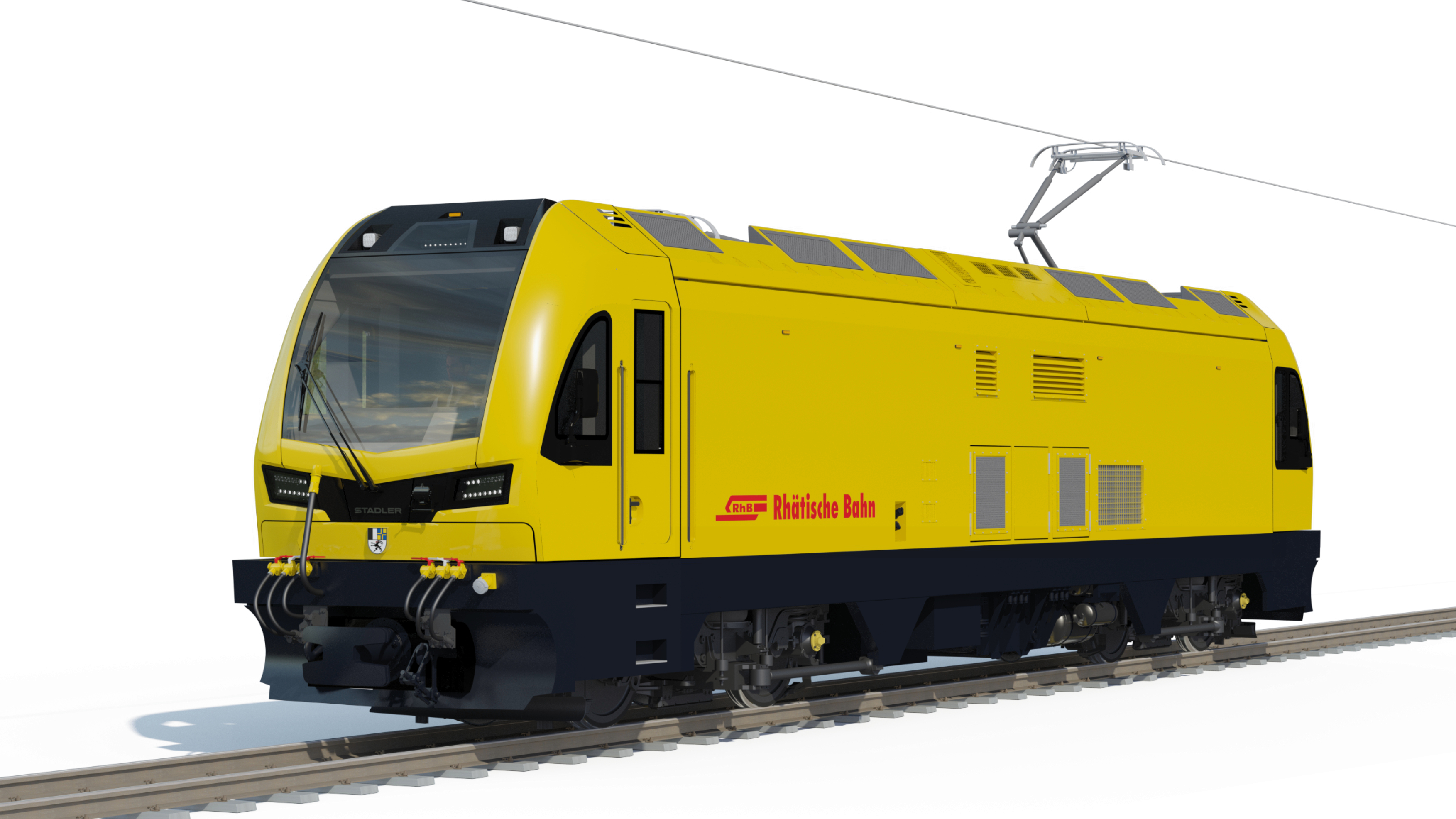 Visualisierung der neuen Stadler Bahndienstlokomotiven. Die RhB hat 8 Lokomotiven bestellt.
