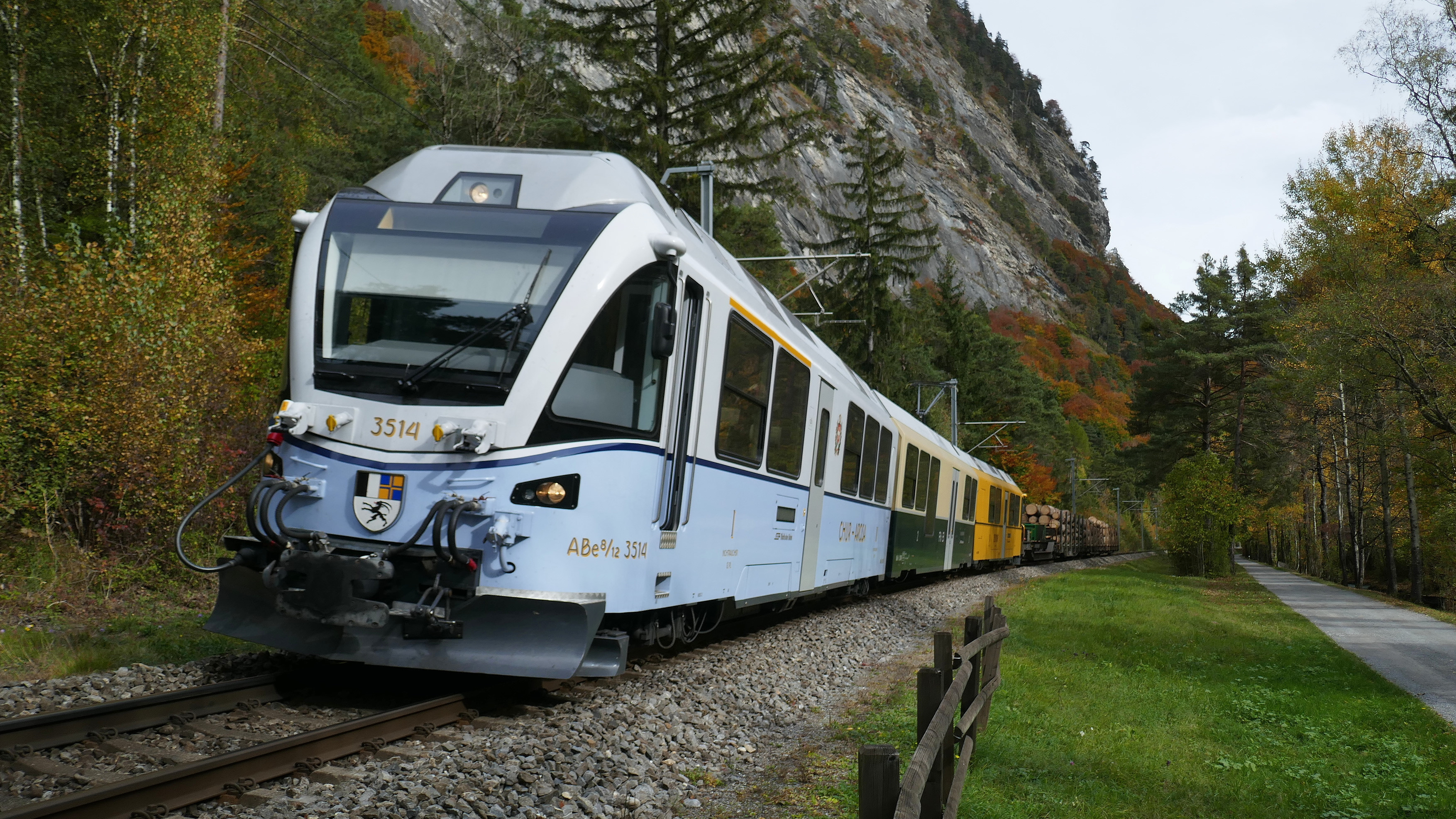 ABe 8/12 3514 "Ahnenzug" kurz nach dem Klustunnel bei Malans